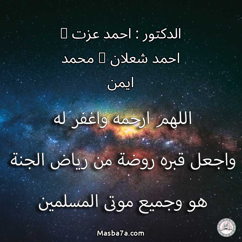 اللهم ارحم ( الدكتور : احمد عزت _ احمد شعلان _ محمد ايمن ) وانس وحشته واجمعنا به في جنتك ، اللهم ارحمه بقدر شوقنا له اللهم ارحمه واغفر له .