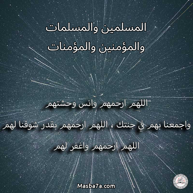 اللهم ارحم ( المسلمين والمسلمات والمؤمنين والمؤمنات ) وانس وحشتهم واجمعنا بهم في جنتك ، اللهم ارحمهم بقدر شوقنا لهم اللهم ارحمهم واغفر لهم.