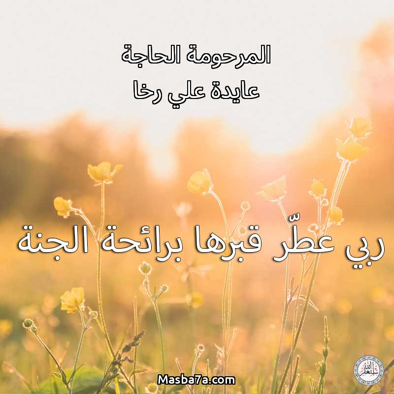 اللهم ارحم ( المرحومة الحاجة عايدة علي رخا ) وانس وحشتها واجمعنا بها في جنتك ، اللهم ارحمها بقدر شوقنا لها اللهم ارحمها واغفر لها .