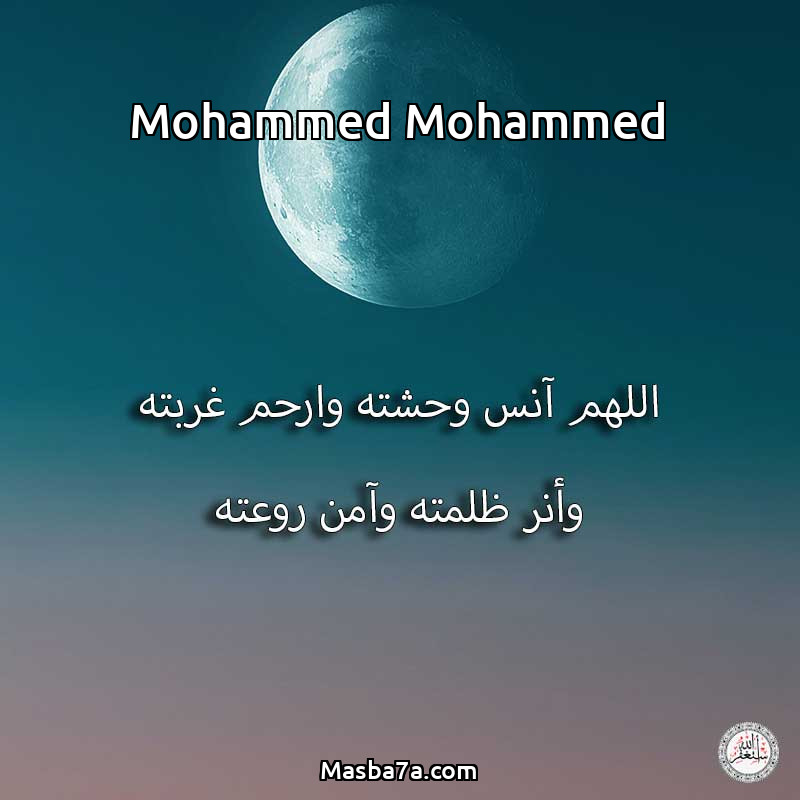 اللهم ارحم ( Mohammed Mohammed ) وانس وحشته واجمعنا به في جنتك ، اللهم ارحمه بقدر شوقنا له اللهم ارحمه واغفر له .