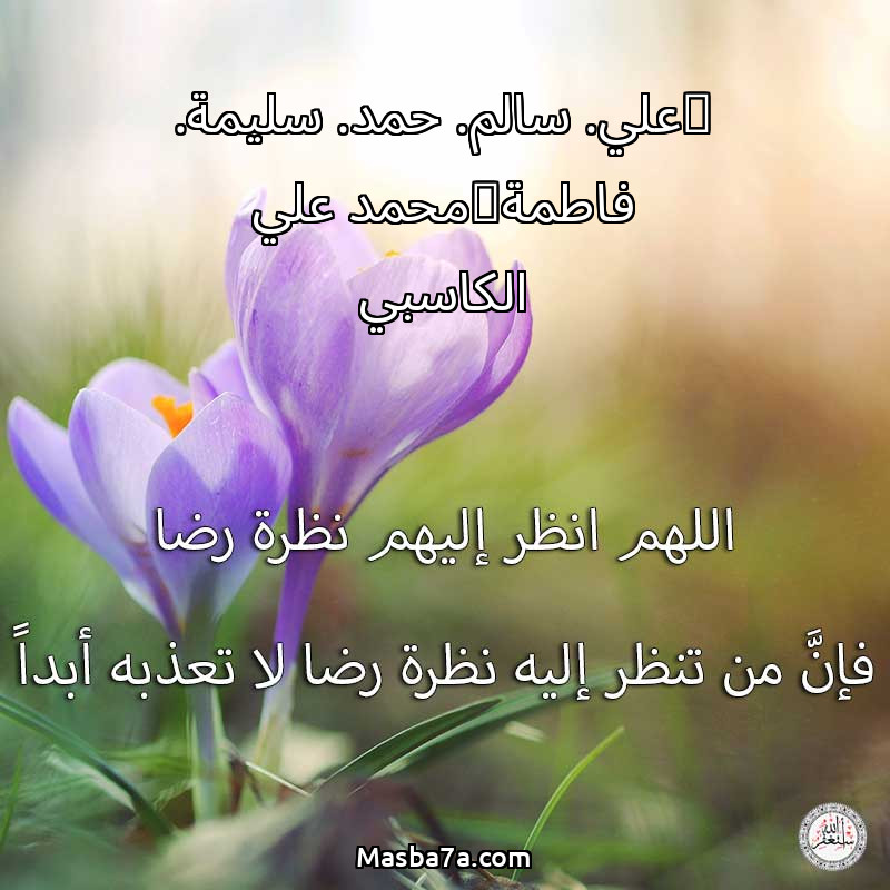 اللهم ارحم ( (علي. سالم. حمد. سليمة. فاطمة)محمد علي الكاسبي ) وانس وحشتهم واجمعنا بهم في جنتك ، اللهم ارحمهم بقدر شوقنا لهم اللهم ارحمهم واغفر لهم.