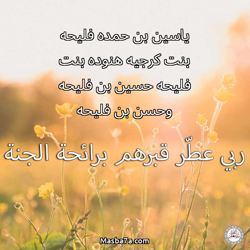 دعاء عن أرواح المرحومين ياسين بن حمده فليحه بنت كرجيه هنوده بنت فليحه حسين بن فليحه وحسن بن فليحه