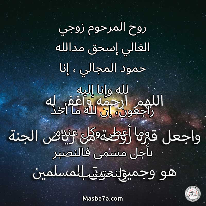 دعاء عن روح المرحوم روح المرحوم زوجي الغالي إسحق مدالله حمود المجالي ، إنا لله وإنا إليه راجعون، إن لله ما أخذ وما أعطى وكل عنده بأجل مسمى فالنصبر ولنحتسب