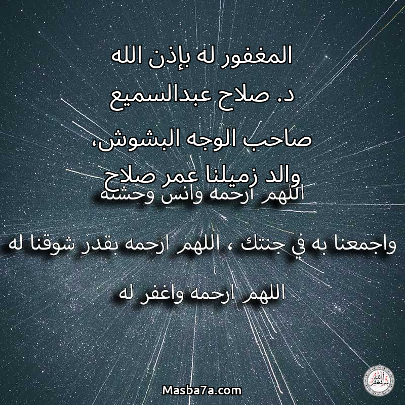 دعاء عن روح المرحوم المغفور له بإذن الله د. صلاح عبدالسميع صاحب الوجه البشوش، والد زميلنا عمر صلاح