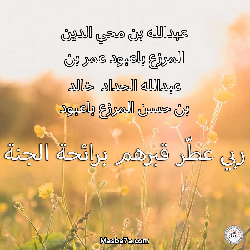 دعاء عن أرواح المرحومين عبدالله بن محي الدين المرزع باعبود عمر بن عبدالله الحداد خالد بن حسن المرزع باعبود
