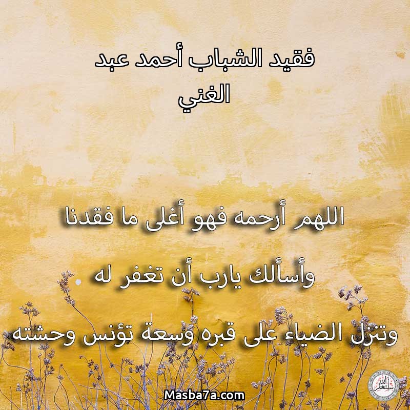 اللهم ارحم ( فقيد الشباب أحمد عبد الغني ) وانس وحشته واجمعنا به في جنتك ، اللهم ارحمه بقدر شوقنا له اللهم ارحمه واغفر له .