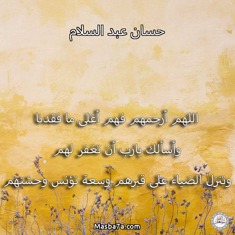 اللهم ارحم ( حسان عبد السلام / أم احمد حسان ) وانس وحشتهم واجمعنا بهم في جنتك ، اللهم ارحمهم بقدر شوقنا لهم اللهم ارحمهم واغفر لهم.