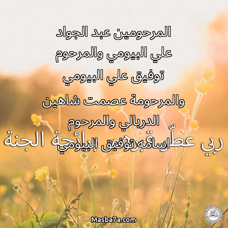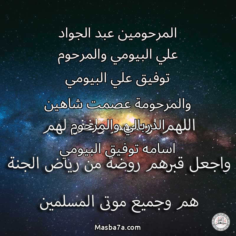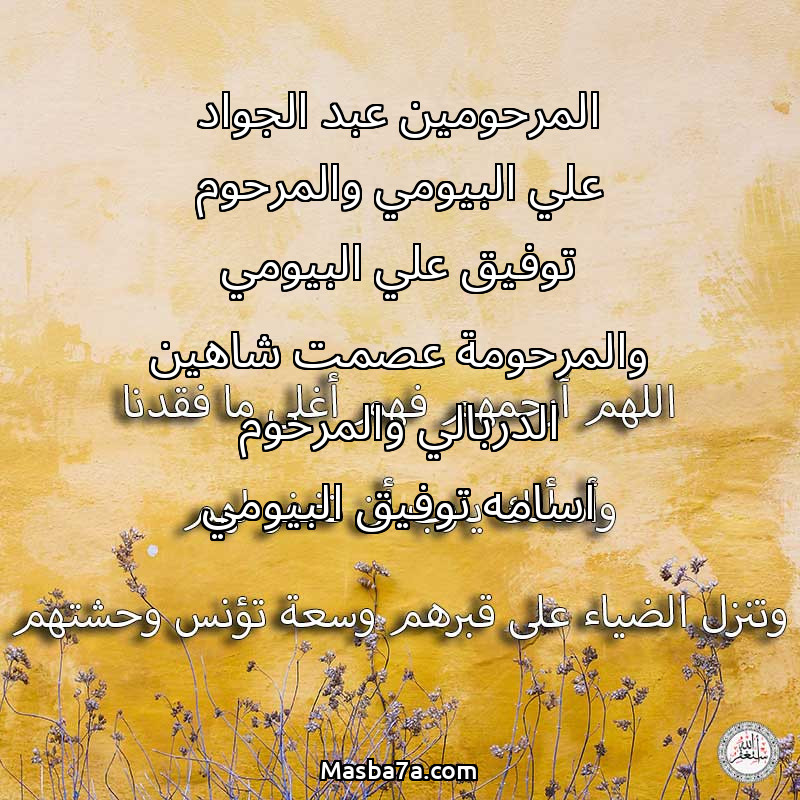 دعاء عن أرواح المرحومين المرحومين عبد الجواد علي البيومي والمرحوم توفيق علي البيومي والمرحومة عصمت شاهين الدربالي والمرحوم اسامه توفيق البيومي
