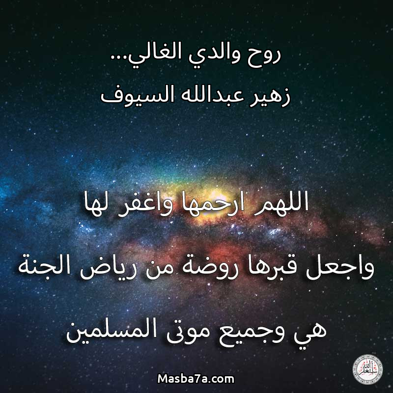 اللهم ارحم ( روح والدي الغالي... زهير عبدالله السيوف ) وانس وحشتها واجمعنا بها في جنتك ، اللهم ارحمها بقدر شوقنا لها اللهم ارحمها واغفر لها .