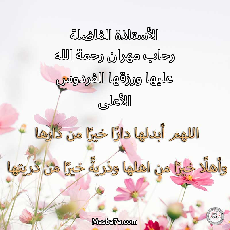 دعاء عن روح المرحومة الأستاذة الفاضلة رحاب مهران رحمة الله عليها ورزقها الفردوس الأعلى