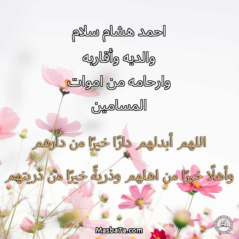 دعاء عن أرواح المرحومين احمد هشام سلام والديه وأقاربه وارحامه من اموات المسامين