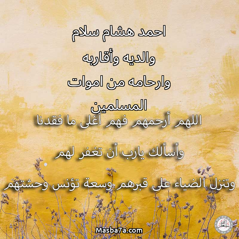 دعاء عن أرواح المرحومين احمد هشام سلام والديه وأقاربه وارحامه من اموات المسلمين