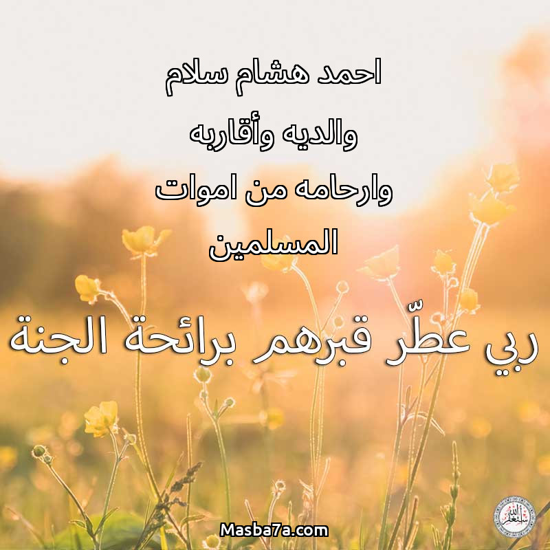 اللهم ارحم ( احمد هشام سلام والديه وأقاربه وارحامه من اموات المسلمين ) وانس وحشتهم واجمعنا بهم في جنتك ، اللهم ارحمهم بقدر شوقنا لهم اللهم ارحمهم واغفر لهم.