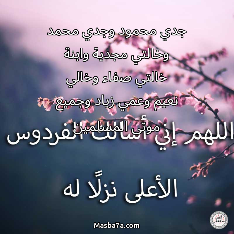 دعاء عن روح المرحوم جدي محمود وجدي محمد وخالتي مجدية وابنة خالتي صفاء وخالي نعيم وعمي زياد وجميع موتى المسلمين