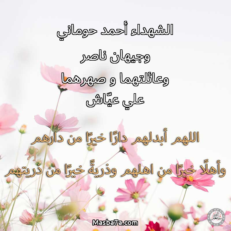 دعاء عن أرواح المرحومين الشهداء أحمد حوماني وجيهان ناصر وعائلتهما و صهرهما علي عيّاش