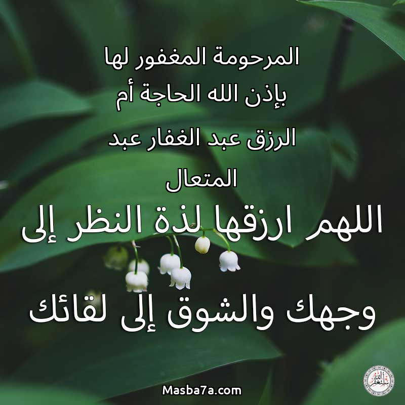 دعاء عن روح المرحومة المرحومة المغفور لها بإذن الله الحاجة أم الرزق عبد الغفار عبد المتعال