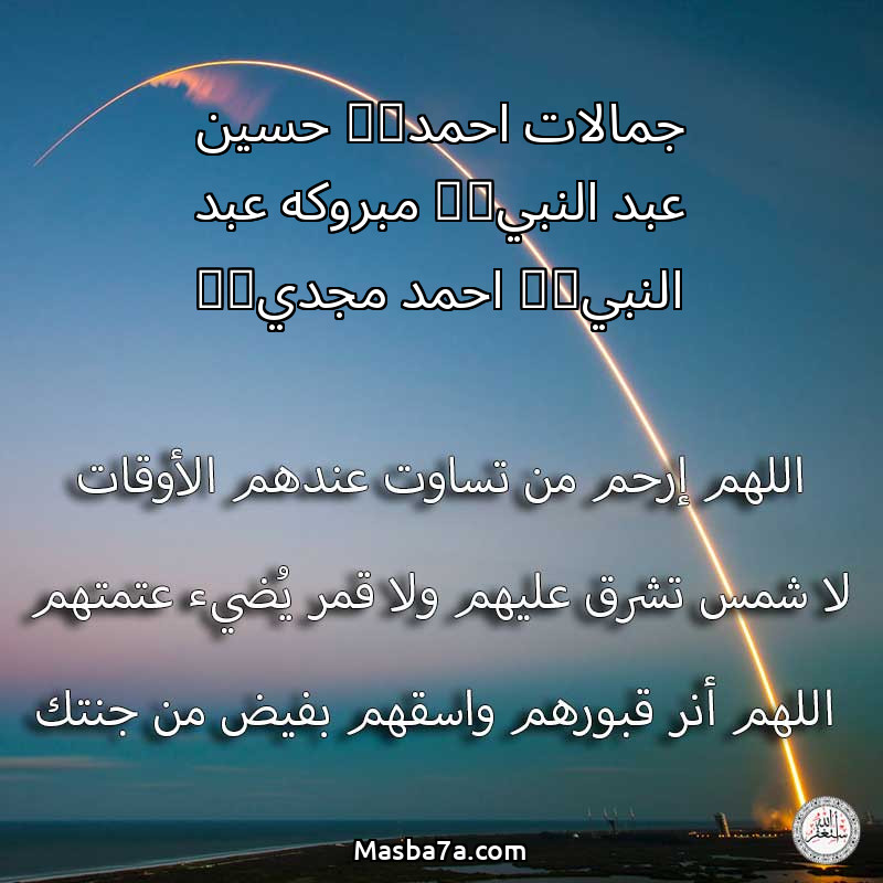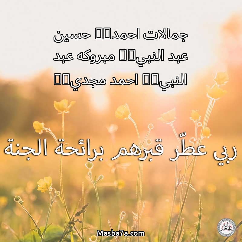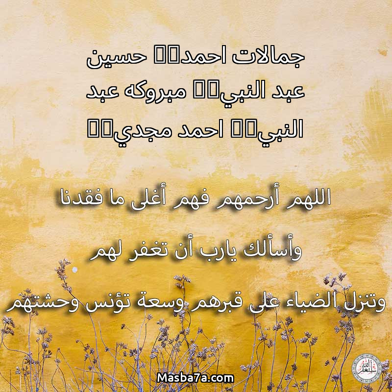 اللهم ارحم ( جمالات احمد & حسين عبد النبي& مبروكه عبد النبي & احمد مجدي& ) وانس وحشتهم واجمعنا بهم في جنتك ، اللهم ارحمهم بقدر شوقنا لهم اللهم ارحمهم واغفر لهم.