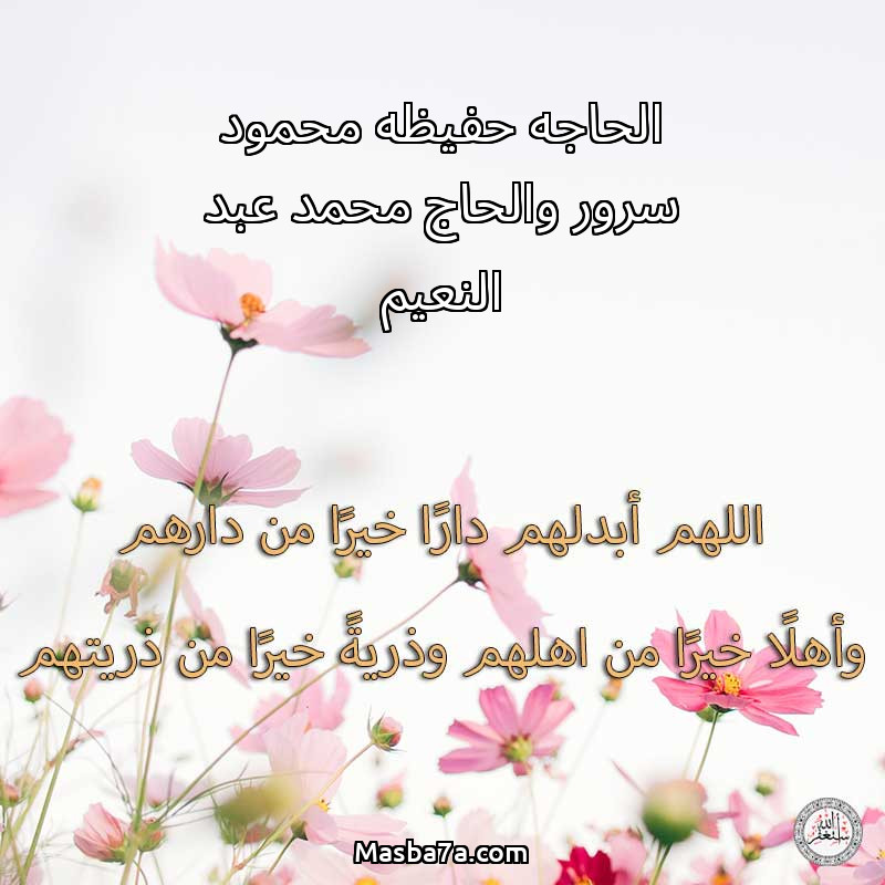 اللهم ارحم ( الحاجه حفيظه محمود سرور والحاج محمد عبد النعيم ) وانس وحشتهم واجمعنا بهم في جنتك ، اللهم ارحمهم بقدر شوقنا لهم اللهم ارحمهم واغفر لهم.