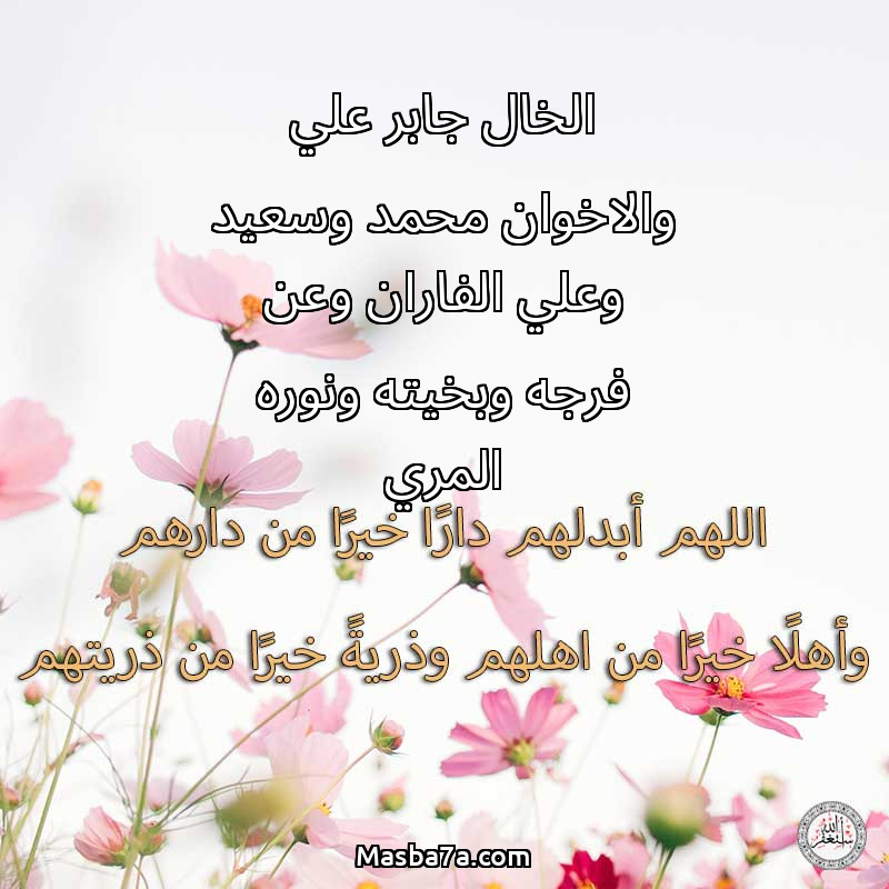 دعاء عن أرواح المرحومين الخال جابر علي والاخوان محمد وسعيد وعلي الفاران وعن فرجه وبخيته ونوره المري