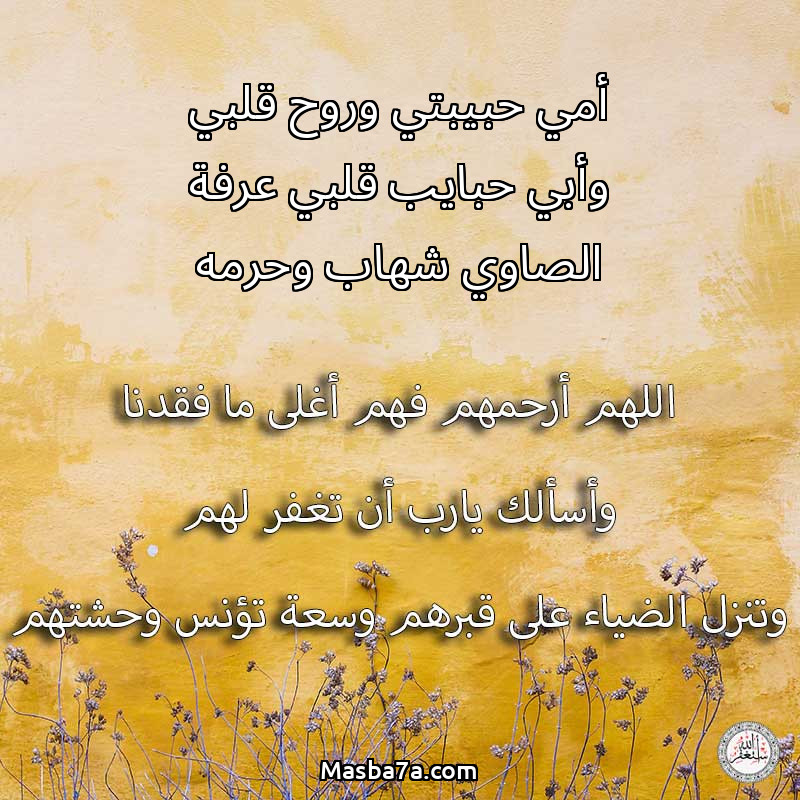 اللهم ارحم ( أمي حبيبتي وروح قلبي وأبي حبايب قلبي عرفة الصاوي شهاب وحرمه ) وانس وحشتهم واجمعنا بهم في جنتك ، اللهم ارحمهم بقدر شوقنا لهم اللهم ارحمهم واغفر لهم.