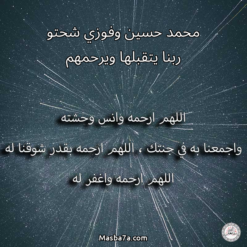 اللهم ارحم ( محمد حسين وفوزي شحتو ربنا يتقبلها ويرحمهم ) وانس وحشته واجمعنا به في جنتك ، اللهم ارحمه بقدر شوقنا له اللهم ارحمه واغفر له .