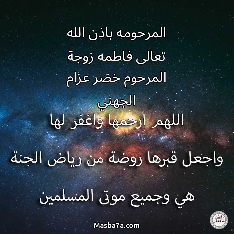 دعاء عن روح المرحومة المرحومه باذن الله تعالى فاطمه زوجة المرحوم خضر عزام الجهني