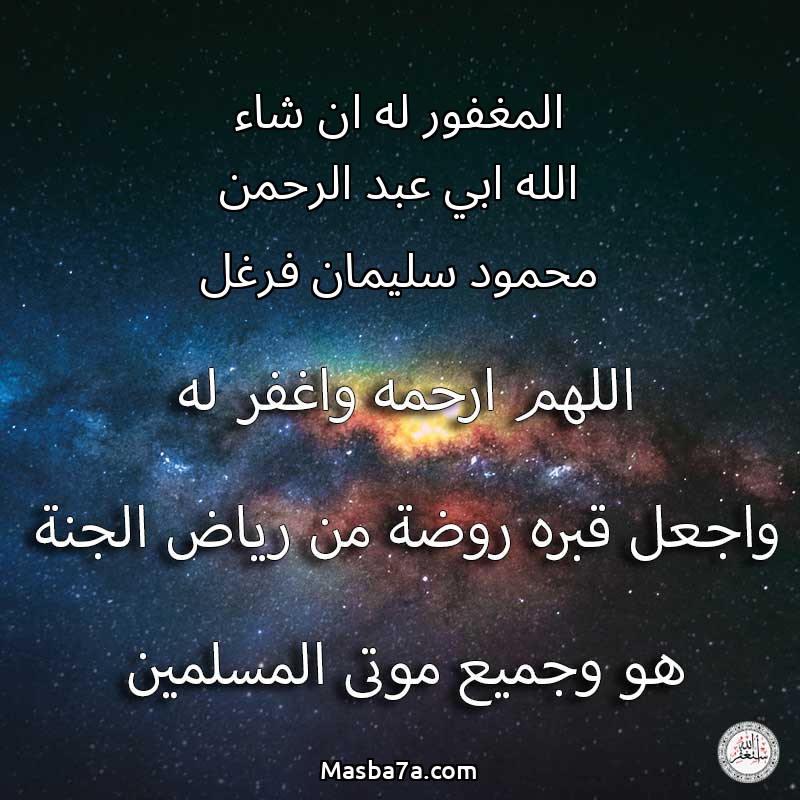 اللهم ارحم ( المغفور له ان شاء الله ابي عبد الرحمن محمود سليمان فرغل ) وانس وحشته واجمعنا به في جنتك ، اللهم ارحمه بقدر شوقنا له اللهم ارحمه واغفر له .