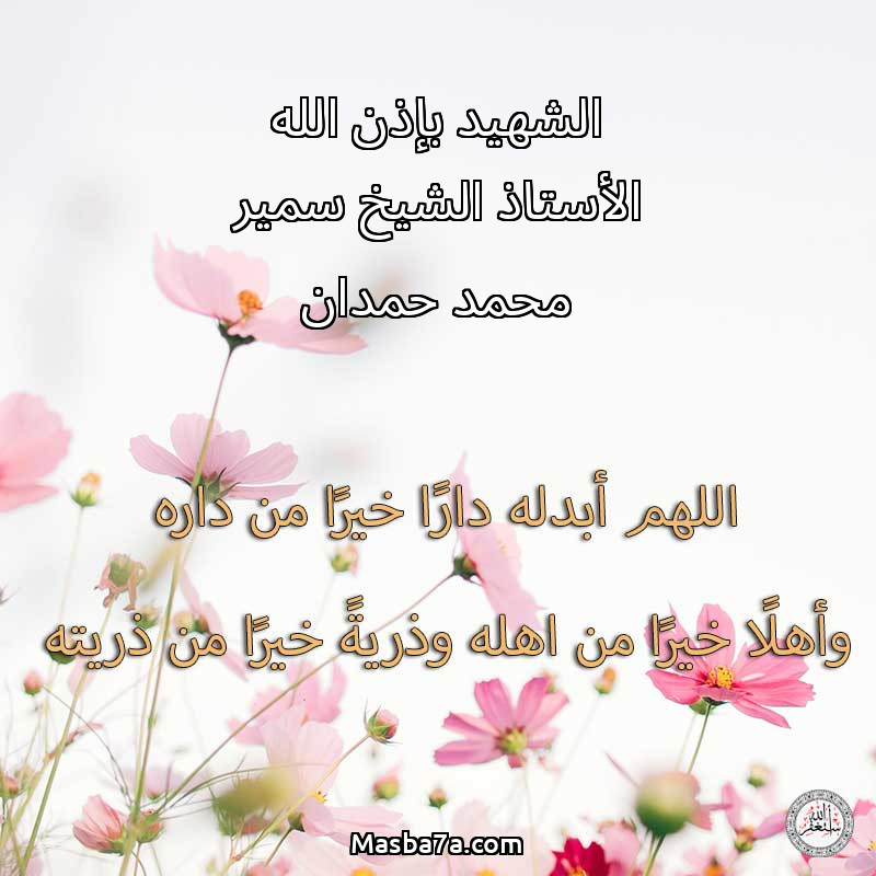 اللهم ارحم ( الشهيد بإذن الله الأستاذ الشيخ سمير محمد حمدان ) وانس وحشته واجمعنا به في جنتك ، اللهم ارحمه بقدر شوقنا له اللهم ارحمه واغفر له .