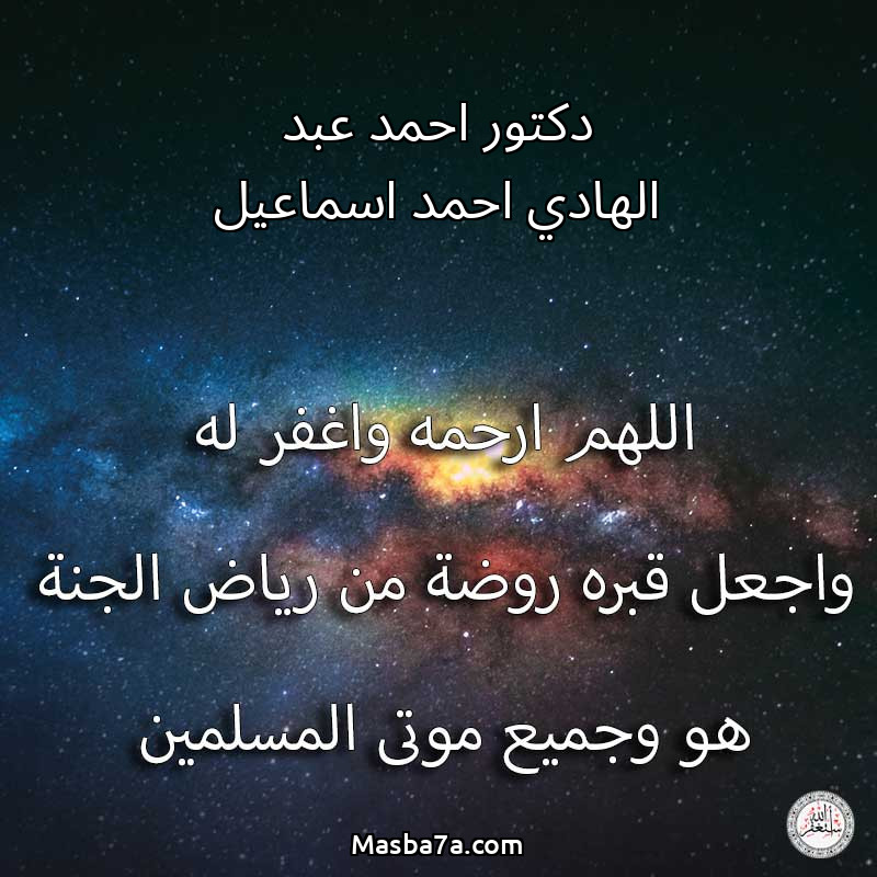 اللهم ارحم ( دكتور احمد عبد الهادي احمد اسماعيل ) وانس وحشته واجمعنا به في جنتك ، اللهم ارحمه بقدر شوقنا له اللهم ارحمه واغفر له .