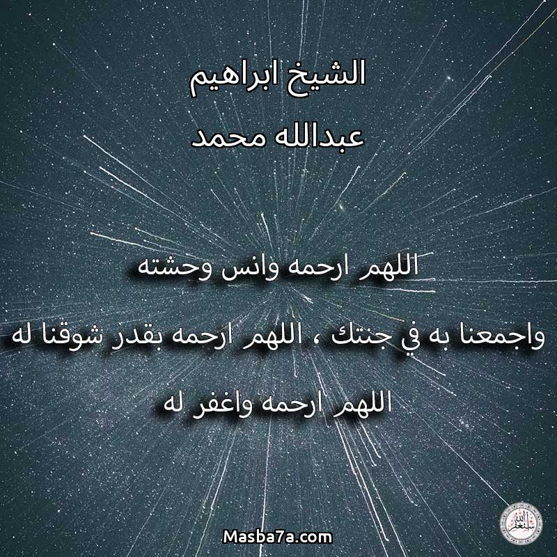 اللهم ارحم ( الشيخ ابراهيم عبدالله محمد ) وانس وحشته واجمعنا به في جنتك ، اللهم ارحمه بقدر شوقنا له اللهم ارحمه واغفر له .