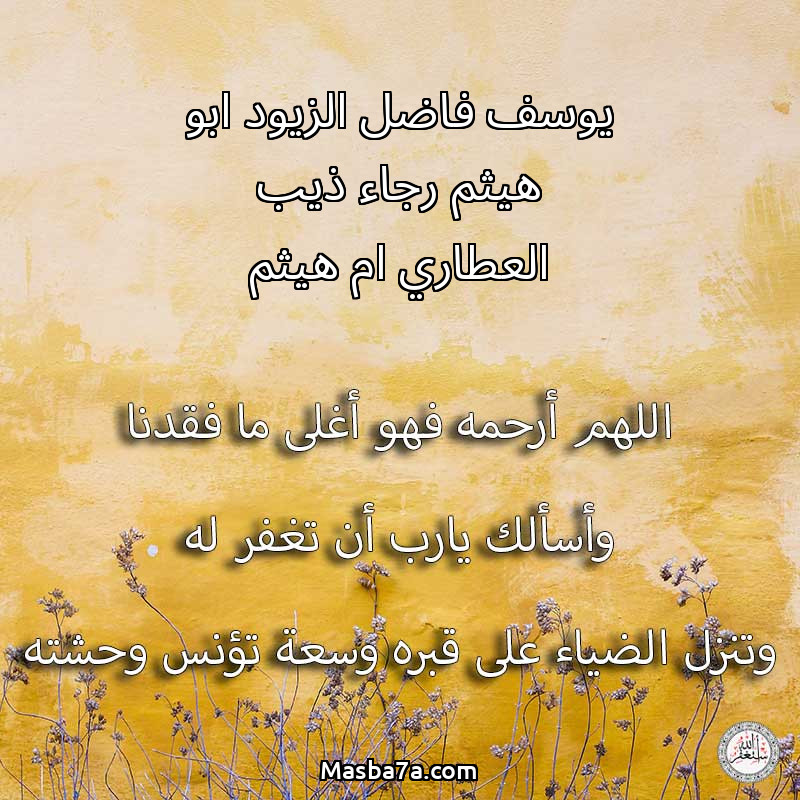 دعاء عن روح المرحوم يوسف فاضل الزيود ابو هيثم رجاء ذيب العطاري ام هيثم