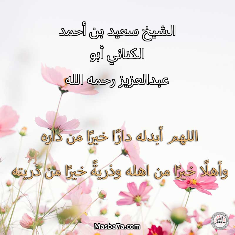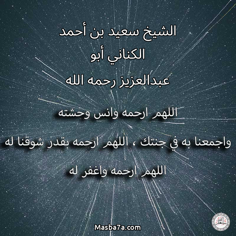 اللهم ارحم ( الشيخ سعيد بن أحمد الكناني أبو عبدالعزيز رحمه الله ) وانس وحشته واجمعنا به في جنتك ، اللهم ارحمه بقدر شوقنا له اللهم ارحمه واغفر له .