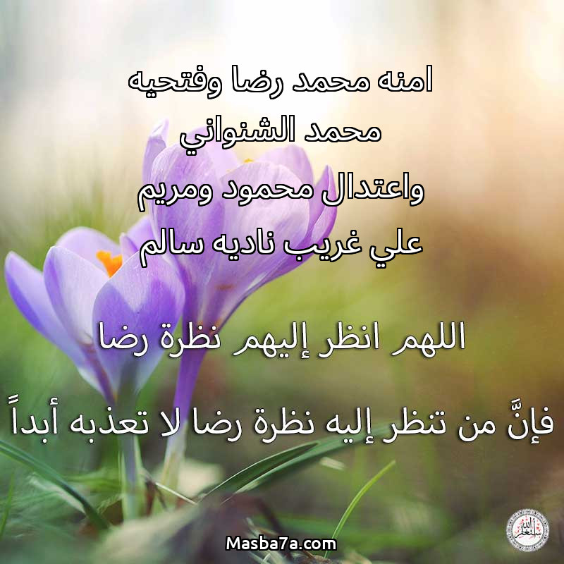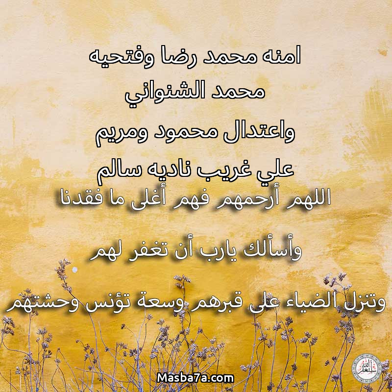 دعاء عن أرواح المرحومين امنه محمد رضا وفتحيه محمد الشنواني واعتدال محمود ومريم علي غريب ناديه سالم