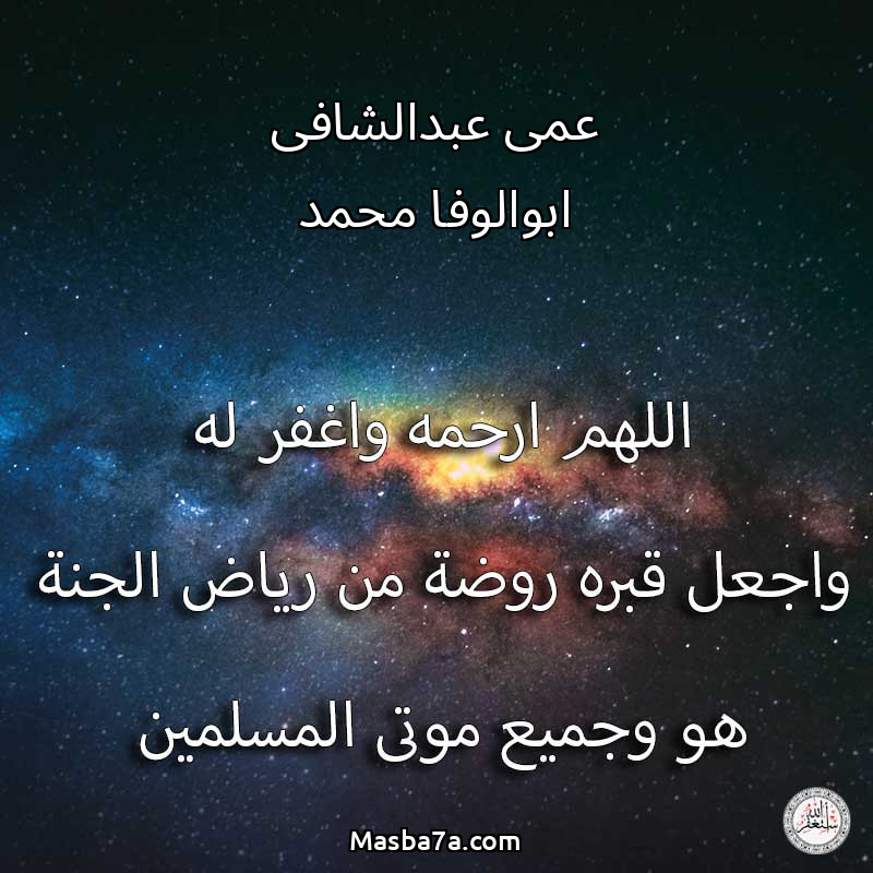 اللهم ارحم ( عمى عبدالشافى ابوالوفا محمد ) وانس وحشته واجمعنا به في جنتك ، اللهم ارحمه بقدر شوقنا له اللهم ارحمه واغفر له .