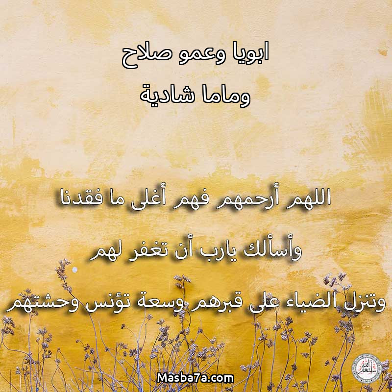 اللهم ارحم ( ابويا وعمو صلاح وماما شادية ) وانس وحشتهم واجمعنا بهم في جنتك ، اللهم ارحمهم بقدر شوقنا لهم اللهم ارحمهم واغفر لهم.