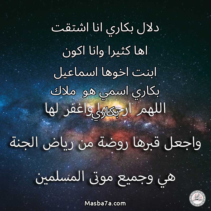 دعاء عن روح المرحومة دلال بكاري انا اشتقت اها كثيرا وانا اكون ابنت اخوها اسماعيل بكاري اسمي هو ملاك بكاري