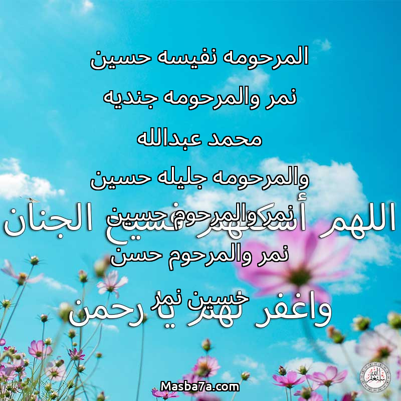 دعاء عن أرواح المرحومين المرحومه نفيسه حسين نمر والمرحومه جنديه محمد عبدالله والمرحومه جليله حسين نمر والمرحوم حسين نمر والمرحوم حسن حسين نمر