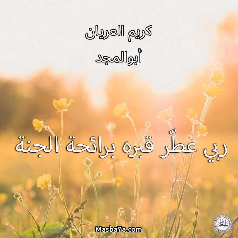اللهم ارحم ( كريم العريان أبوالمجد ) وانس وحشته واجمعنا به في جنتك ، اللهم ارحمه بقدر شوقنا له اللهم ارحمه واغفر له .