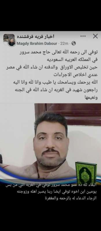 اللهم ارحم ( الحاج محمد سرور ) وانس وحشته واجمعنا به في جنتك ، اللهم ارحمه بقدر شوقنا له اللهم ارحمه واغفر له .