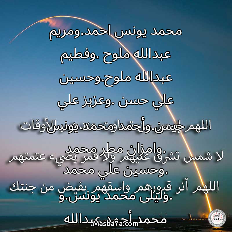 دعاء عن أرواح المرحومين محمد يونس احمد.ومريم عبدالله ملوح .وفطيم عبدالله ملوح.وحسين علي حسن .وعزيز علي حسن.وأحمد محمد يونس .وامزان مطر محمد .وحسين علي محمد .وليلى محمد يونس.و محمد أحمد عبدالله