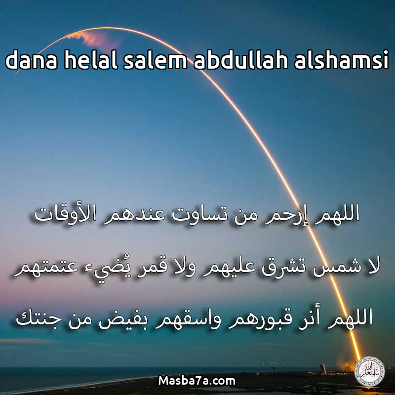اللهم ارحم ( dana helal salem abdullah alshamsi ) وانس وحشتها واجمعنا بها في جنتك ، اللهم ارحمها بقدر شوقنا لها اللهم ارحمها واغفر لها .