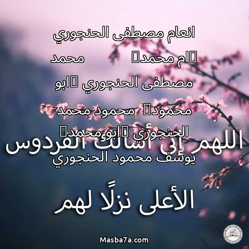 دعاء عن أرواح المرحومين انعام مصطفى الحنجوري (ام محمد) محمد مصطفى الحنجوري (ابو محمود) محمود محمد الحنجوري (ابو محمد) يوسف محمود الحنجوري