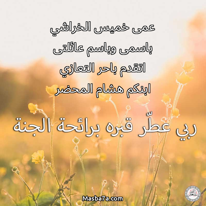 دعاء عن روح المرحوم عمى خميس الخراشي باسمى وباسم عائلتى اتقدم باحر التعازي ابنكم هشام المحضر