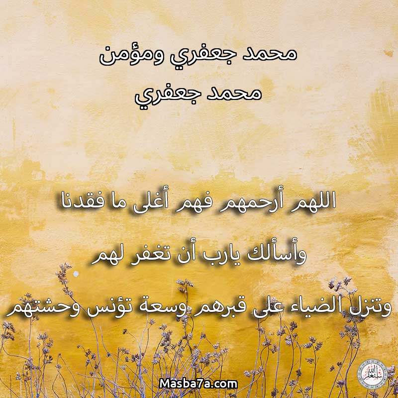 اللهم ارحم ( محمد جعفري ومؤمن محمد جعفري ) وانس وحشتهم واجمعنا بهم في جنتك ، اللهم ارحمهم بقدر شوقنا لهم اللهم ارحمهم واغفر لهم.
