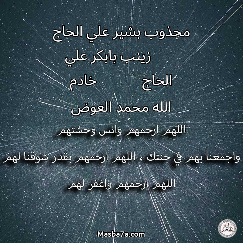 دعاء عن أرواح المرحومين مجذوب بشير علي الحاج زينب بابكر علي الحاج خادم الله محمد العوض