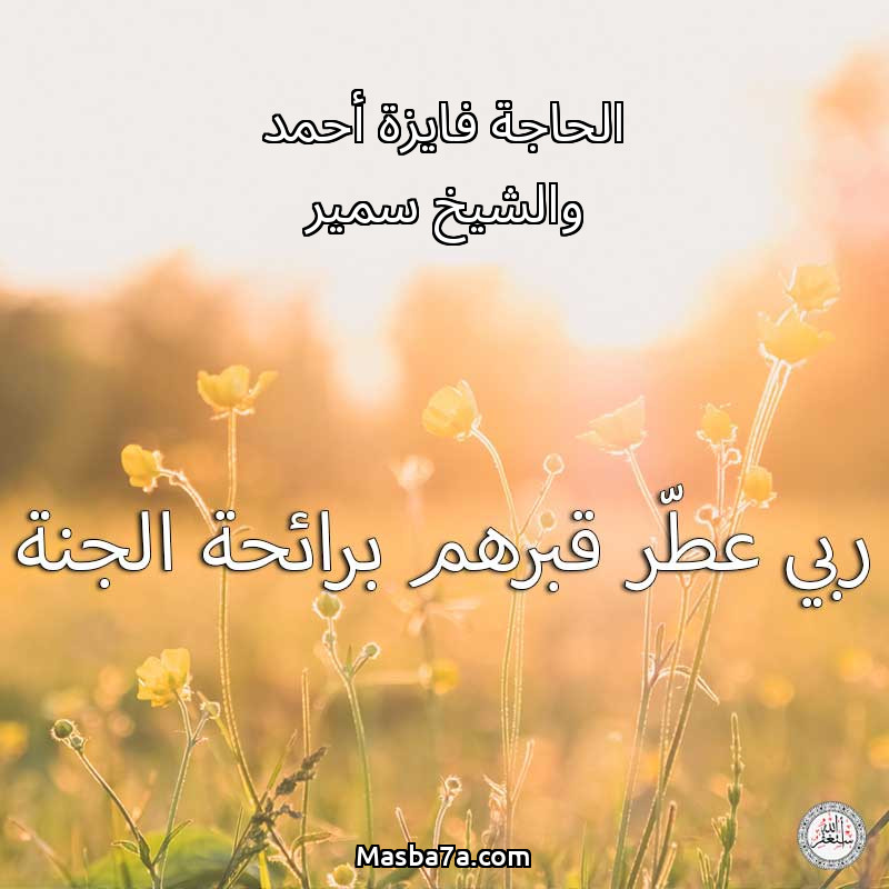 اللهم ارحم ( الحاجة فايزة أحمد والشيخ سمير ) وانس وحشتهم واجمعنا بهم في جنتك ، اللهم ارحمهم بقدر شوقنا لهم اللهم ارحمهم واغفر لهم.