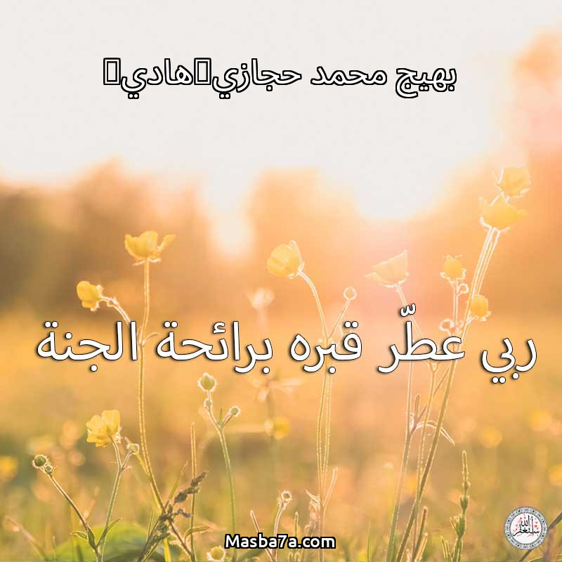 اللهم ارحم ( بهيج محمد حجازي(هادي) ) وانس وحشته واجمعنا به في جنتك ، اللهم ارحمه بقدر شوقنا له اللهم ارحمه واغفر له .