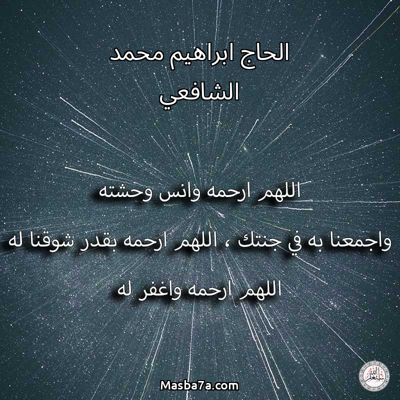 اللهم ارحم ( الحاج ابراهيم محمد الشافعي ) وانس وحشته واجمعنا به في جنتك ، اللهم ارحمه بقدر شوقنا له اللهم ارحمه واغفر له .