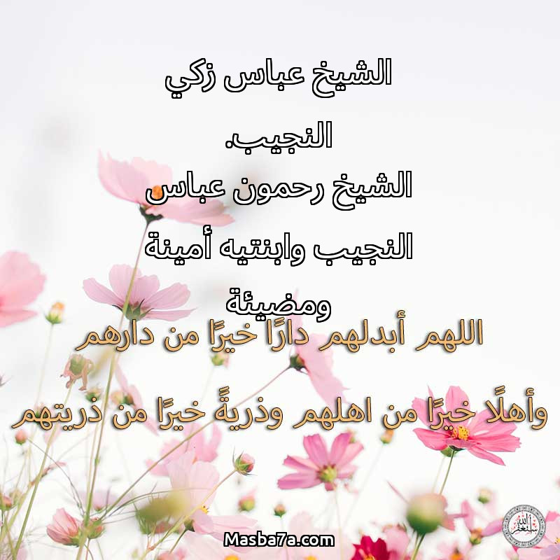 دعاء عن أرواح المرحومين الشيخ عباس زكي النجيب. الشيخ رحمون عباس النجيب وابنتيه أمينة ومضيئة