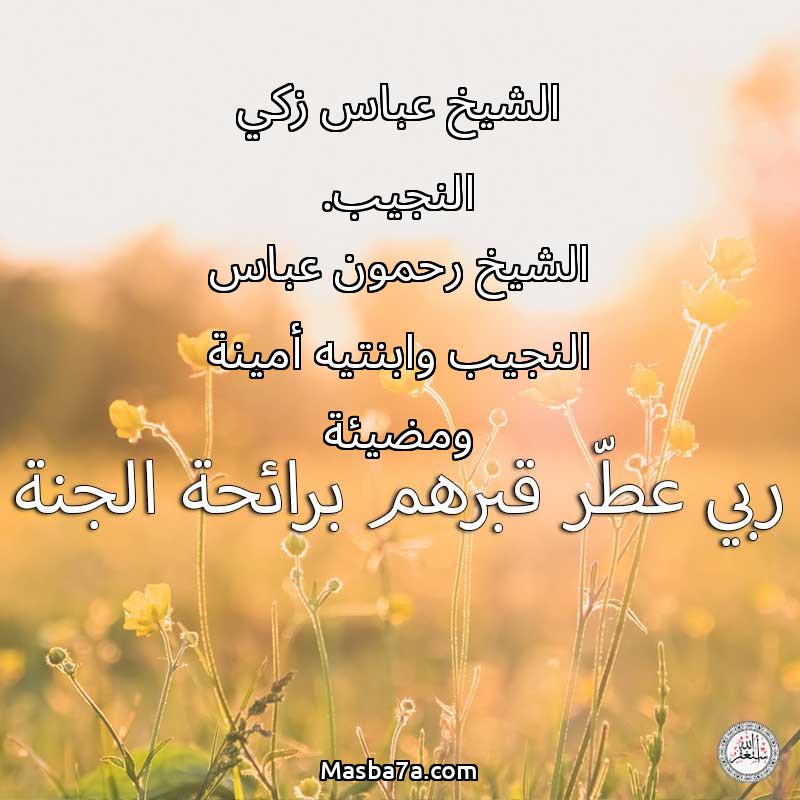 اللهم ارحم ( الشيخ عباس زكي النجيب. الشيخ رحمون عباس النجيب وابنتيه أمينة ومضيئة ) وانس وحشتهم واجمعنا بهم في جنتك ، اللهم ارحمهم بقدر شوقنا لهم اللهم ارحمهم واغفر لهم.